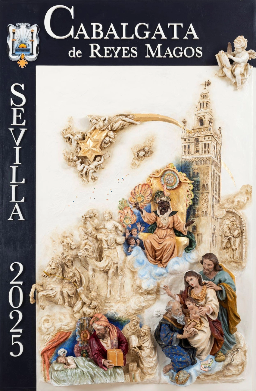 El Ateneo de Sevilla ha presentado este viernes el cartel anunciador de la Cabalgata de Reyes Magos de Sevilla 2025, una obra de la escultora Guadalupe de Guzmán. El acto, clebrado en la Fundación Caja Rural del Sur, ha estado presidido por Emilio A. Boja Malavé y Manuel Ruiz Rojas; presidente del Ateneo de Sevilla y director de Relaciones Institucionales de Fundación Caja Rural del Sur, respectivamente; y ha contado con la asistencia del delegado de Cartuja, Parques Innovadores, Movilidad, Economía y Comercio y Distrito Bellavista-La Palmera, Álvaro Pimentel Siles en representación Manuel Alés del Pueyo, delegado de Fiestas Mayores.